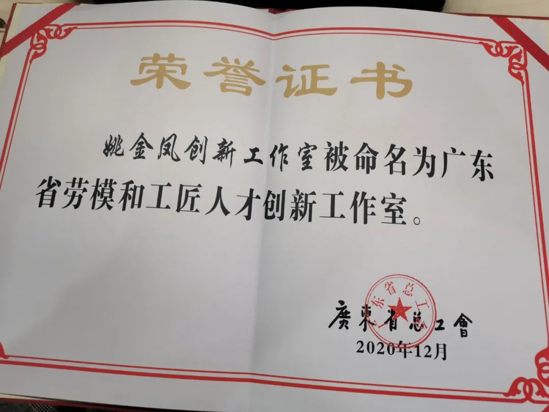 此前,,,,,广东省总工会宣布文件《广东省总工会关于命名2020年广东省劳模和工匠人才立异事情室的决议》,,,,,全省共60个立异事情室被命名,,,,,姚金凤立异事情室被列入其中。。。。。。值得一提的是,,,,,惠州市总工会获得命名的仅有姚金凤立异事情室。。。。。。